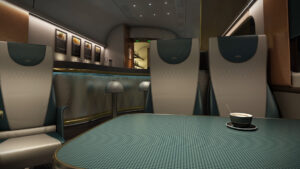 Working in harmony with the Engineering division, Transcal Rail created and trimmed 1,970 seats, each with an underslung USB and 3-pin socket, a meal tray, and reading light in the seat back – in LUMO Blue. Take a video tour of the LUMO carriage beneath the image gallery below.